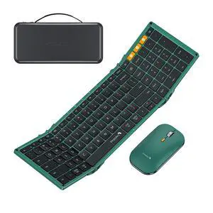 ProtoArc Foldable Keyboard and Mouse, XKM01 True Full-Size Folding Wireless Keyboard Mouse Combo for Business Travel, a Portable Office Suite On-The-Go, Compatible with Laptop iPad Tablet - Green
