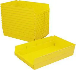 Akro-Mils 30178 Plastic Shelf Bins, Heavy Duty Storage Bins for Garage, Closet, and Drawer Organization, 18-Inch x 11-Inch x 4-Inch, Yellow, 12-Pack