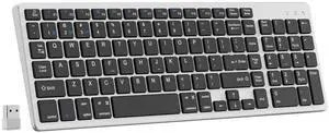 KTGGHG Slim Wireless Bluetooth Keyboard - US QWERTY Layout, Ultra Quiet, 2.4 GHz USB Receiver, Plug n' Play Connectivity, Compatible with iOS/Android/Windows Systems - Silver White