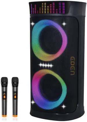 Large Party Speaker with Dual 6.5 Inch Woofers, 200W Peak Powerful Sound, 15 Hours Playtime, Type-C Charging, LED Light Show, Wireless Microphone for Outdoor Parties