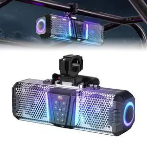 KEMIMOTO Midnight S40B 16-inch UTV Sound Bar Built-in Battery, Quick Release, Waterproof IP66, Multicolor Lights Metal-Built Soundbar for UTV Golf Cart Boat Fits 1"-2" Roll Bar