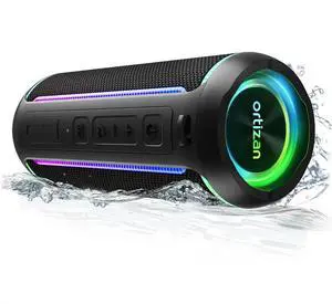 Ortizan Portable Bluetooth Speaker (3nd Gen), Bold 40W Sound with DSP Bass Boost, IPX7 Waterproof, 30Hrs of Playtime, TWS, BT 5.3, Colorful Lights, EQ, USB, Wireless for Home, Outdoor, Party - Black