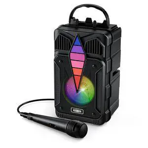 Dnil Portable Speaker with Voice Control, RGB Multi-Color Rhythm Light, Support TWS Pairing, Support USB/TF/FM/AUX Connection, Suitable for Home Party or Outdoor Use (Black)