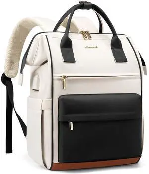 LOVEVOOK Laptop Backpack for Women 15.6 Inch, Travel Backpack with USB Charging Port Large Capacity Laptop Bag, Waterproof Bag for Business College Airline Approved Work Backpack(Black White)