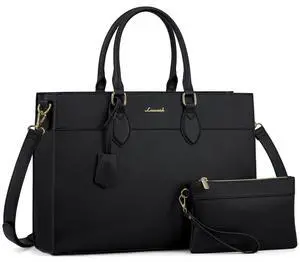LOVEVOOK Laptop Bag for Women, 15.6 inch Laptop Tote Computer Briefcase for Work Large Waterproof Handbag Professional Shoulder Bag for Women Business Office, Black