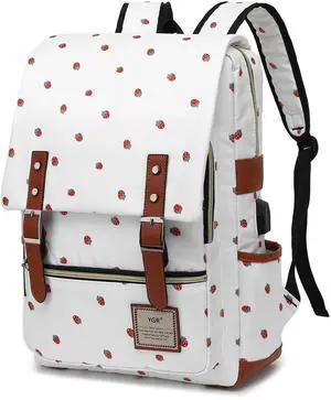 YGR Floral Laptop Backpack for Women, Female, Travel, Business, Outdoor Sports, Office, Work White Strawberry