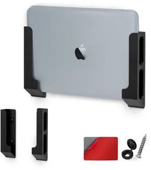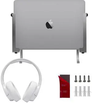 IFCASE Aluminum Wall Laptop Mount Holder for MacBook Air, Pro, Surface, iPad, Tablets, Cell Phones with Headphone Hook, Anti-Scratch Pads, Adhesive & Screws (Silver)