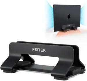 Psitek Aluminum Vertical Laptop Stand Dock Holder, Adjustable Slot Width 12-42mm, Space-Saving Upright Storage for MacBook and Laptops