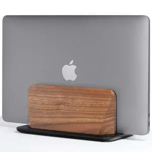 LONG TAO Laptop Holder Bamboo Vertical Laptop Stand for Desk Desktop Stand Fits MacBook Pro and Other Laptops Upright Holder