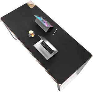 Chihein 63 x 28 Cork & PU Leather Desk Mat (Black) - Huge Mouse Pad, Double Sided Waterproof Desk Pad Protector for Gaming, Office, Home