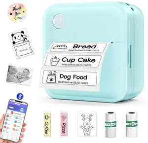 Mini Printer, Sticker Printer with 10 Rolls Sticker Paper, Bluetooth Thermal Printer Compatible with iOS & Android, Mini Pocket Printer Portable and Inkless for Study Notes, Pictures, DIY, Label