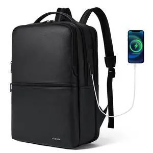 Shrrie Vegan Leather Laptop Backpack for Women&Men,16 Inch Expandable Backpack with USB Charging Port,Two-toned Black