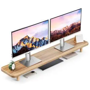 WELL WENG Monitor Stand Riser with Sliding Door, Computer Laptop Stand Desk Shelf Organizer with Storage (Natural Bamboo, 25 Inch)