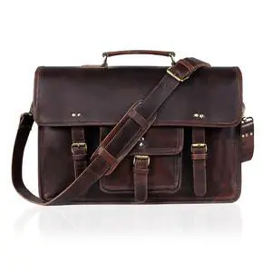 18-Inch Premium Leather Messenger Bag for Men & Women - Leather Laptop Bag, Crossbaody Bag, Handbag, Shoulder Bag, Travel Bag (Unisex Messenger Dark Brown)