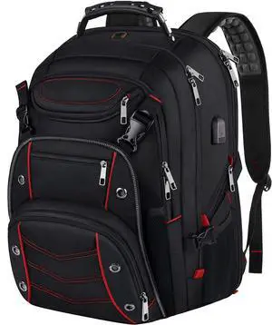 VECKUSON Large 18.4 Inch Laptop Backpack with USB Charger Port, TSA Friendly Flight Approved and RFID Anti-Theft Pocket, Red