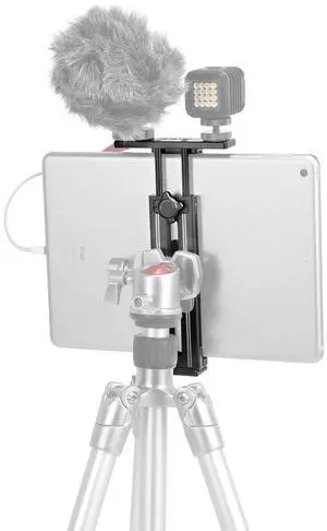 Aluminum IPad Pro Tripod Mount Adapter Holder With Cold Shoe Ball Head and Bluetooth Shutter for iPad Pro 12.9 11 10.5, iPad Air Mini, Surface Galaxy Tab, Video Recording 3.5 to 13.5" iPhone Tablet