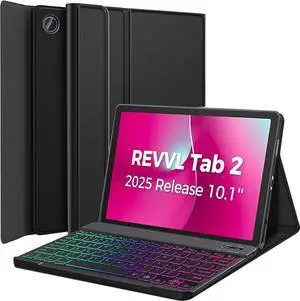Nanhent Case with Keyboard for T-Mobile Revvl Tab 5G 10.36 inch Tablet 2023 Released, 7 Color Rainbow Backlight Detachable Bluetooth Keyboard Cover (Black)