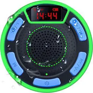 Bluetooth Speakers, DuoTen IPX7 Waterproof Wireless Portable Bluetooth Speakers w/LED Display, FM Radio, Suction Cup, Light Show, Loud Stereo Sound and Bass for Shower, Pool, Party, Travel, Outdoors