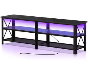 Huuger 55 inch Computer Desk with 4 Drawers, Gaming Desk with LED Lights & Power Outlets, Home Office Desk with Large Storage Space for Bedroom, Work from Home, Black