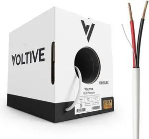 Voltive 16/2 Speaker Wire, Plenum CL3P, White, 250ft - 16AWG, 2 Conductors, Stranded Oxygen-Free Copper, UL Listed - V-1217-4