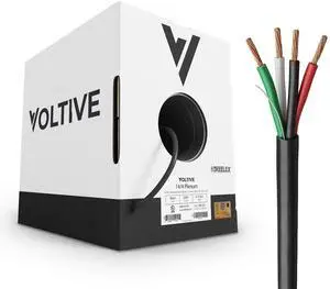 Voltive 14/4 Speaker Wire, Plenum CL3P, Black, 250ft - 14AWG, 4 Conductors, Stranded Oxygen-Free Copper, UL Listed - V-1216-1