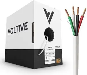 Voltive 14/4 Speaker Wire, Plenum CL3P, White, 500ft - 14AWG, 4 Conductors, Stranded Oxygen-Free Copper, UL Listed - V-1216-4
