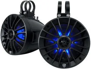 Rockville PT65BR 6.5" 300W peak/100W RMS Powered Bluetooth True Coaxial Tower Speakers, Class-D Amp, IPX6, RGB LED Lights w/Remote, Aux/RCA, for ATV/UTV/RZR/Cart