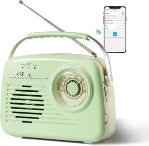 Bingxue Portable Small Retro AM FM Radio, Battery Powered & Plug-in Wall, Vintage Radio with Bluetooth, Easy to Use Large Dial for Home/Outdoor/Christmas Seniors Gifts(Green)