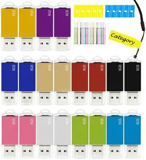 8GB USB Flash Drive 20 Pack Nicepicten FAT32 USB Thumb Drive Memory Stick Jump Zip Drive USB 2.0 Flash Drives 8GB with Lanyard & Label (Mixcolor)