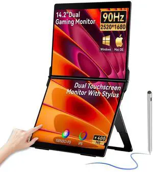 EHOMEWEI X2 Air Touchscreen Portable Dual Monitor 2.8K 90Hz QLED with Stylus Pen 14.2*2 IPS 2520 * 1680 Display, 400 Nit Brightness 1500:1, 100% sRGB, for Office/Home/Travel Laptop Extender Screen