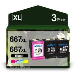 INSMAX 667 Ink Cartridges Black and Color Replacement for HP 667 XL 667XL for Deskjet Ink Advantage Plus 6075 6475 6476, Deskjet Ink Advantage 1275 2375 2775 (2 Black, 1 Tri-Color)