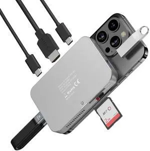 Magnetic M.2 NVMe Enclosure with Cooling Fan, 7 in 1 USB C Hub 10Gbps Data Transfer 4K@60Hz HDMI 100W Power Delivery SD/TF Card Reader M.2 NVMe SSD Docking Station for Type-C Devices