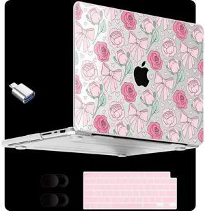 MEEgoodo Case for MacBook Pro 14 inch (M5/M4/M3/M2/M1) Pro/Max 2026 2025 2024 2023 2021, Laptop Shell Fit Model A3427/A3426/A3434/A3112/A3401/A3185/A2918/A2992/A2779/A2442,Pink Peony & Bow