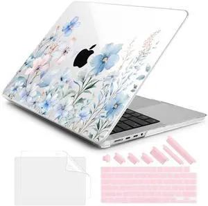 DONGKE Compatible with MacBook Pro 16 Inch Case (2026-2021 Release, M5 M4 M3 M2 M1 Pro/Max Chip), Plastic Hard Shell Cover with Keyboard Cover & Screen Protector for MacBook Pro 16", Blue Flowers