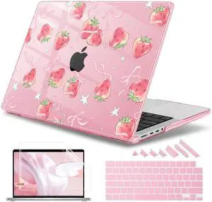 May Chen for 2026 MacBook Pro 14-inch M5 M4 M3 M2 M1 Pro/Max Chip, Release 2026 2025-2021, Model A3427 A3426 A3434 A3112 A3401 A3185, Plastic Hard Shell with Keyboard Cover, Bow Strawberry
