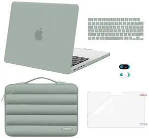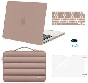 MOSISO Compatible with MacBook Pro 14 inch Case M5 2026 M4 M3 M2 M1 2025-2021 A3427 A3426 A3434 A3112 A3185 A3401 A2918 A2992 A2779 A2442, 5 in 1 Kit Plastic Hard Shell &Puffy Sleeve Bag, Bronze Brown