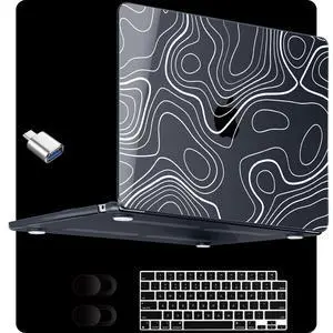 MEEgoodo for M5/M4/M3/M2 MacBook Air 13.6 inch Case 2026 2025 2024 2022(Fit Model A3449 A3240/A3113/A2681), Clear Laptop Shell Cases for MacBook Air 13-inch, Topographic Map