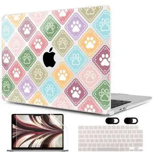 MEEgoodo Case for M5/M4/M3/M2 MacBook Air 13.6 inch Case 2026 2025 2024 2022, Fit Model A3449/A3240/A3113/A2681, Laptop Hard Shell Compatible with MacBook Air 13 inch, Dog Paw & Checked