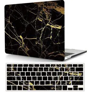 Laptop Case Compatible With New MacBook Pro 15 Inch 2019 2018 2017 2016 Release A1990 A1707 With Touch Bar and Touch ID, Plastic Hard Shell Cover & Keyboard Cover Skin - Black Gold Marble