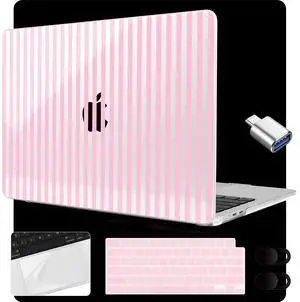MEEgoodo Case for M5/M4/M3/M2 MacBook Air 15 inch Case 2026 2025 2024 2023, Laptop Shell Fit Model (A3448/A3241/A3114/A2941) for MacBook Air 15.3-inch, Pink Stripes