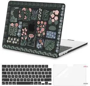 MOSISO Compatible with MacBook Air 13 inch Case 2025 2024 2023 2022 M4 A3240 M3 A3113 M2 A2681, Mixed Floral Plastic Hard Shell&Keyboard Cover&Screen Protector for MacBook Air 13.6 inch Case, Black