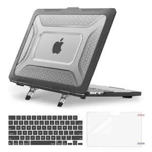 MOSISO Compatible with MacBook Air 13 inch Case 2026-2022 M5 A3449 M4 A3240 M3 A3113 M2 A2681, Honeycomb Heavy Duty Hard Case with TPU Bumper&Kickstand&Keyboard Skin&ScreenFilm, Black