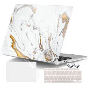 DONGKE for MacBook Air 13.6 Inch Case 2026 2025 2024-2022 A3449 A3240 A3113 A2681 M5 M4 M3 M2 Touch ID, Plastic Hard Shell & Keyboard Cover & Type C Adapter for MacBook Air 13 inch, White Marble