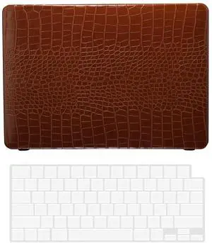 Hard Case Compatible with MacBook Pro 13 Inch Case 2020 2019 2018 2017 2016 Release Model A2338 A2289 A2251 A2159 A1989 A1708 A1706, PU Leather Hard Shell Cover & Keyboard Cover Skin, Brown