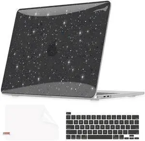 QJUZO for MacBook Pro 13 inch Case 2025-2023 M2 2022-2016 M1 A2338/A2289/A2251/A2159/A1989/A1708/A1706, Glitter Sturdy Hard Shell Cover with Screen & Keyboard Cover for Touch Bar/Non-Touch Bar, Black