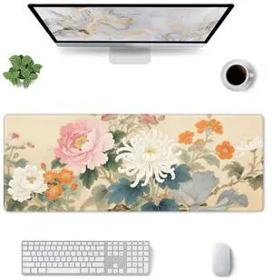 CANFLASHION Desk Pad,Office Desk Mat 31.5"11.8" Large Gaming Mouse Pad,Durable Extended Computer Mouse Pad,Waterproof Thick Big Mouse Pads Non-Slip Rubber Base Office Home Chinese Style Floral