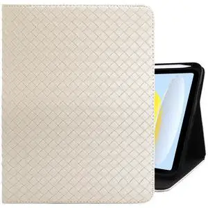 Cabreche Compatible with iPad (A16) 11th Generation 11 Inch 2025,10th Generation Case 2022,iPad 10.9 Inch Case Pencil Holder Soft Back Woven Leather Auto Sleep/Wake Cover Women Girls-Creamy White