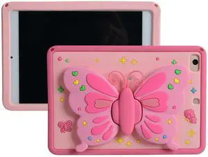 Cartoon Case for iPad Mini 1/2/3/4/5 7.9" MONEHOYSY Cute Soft Silicone Kickstand [Drop Proof,Shock Proof,Anti Slip] Back Stand Cover Case for Kids Children Teens Girls Boys (Butterfly)