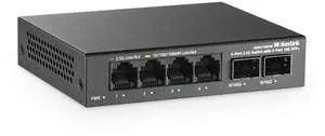 MokerLink 4 Port 2.5G Ethernet Switch with 2x10G SFP+ Slot, 4x2.5G Base-T Ports Compatible with 100/1000Mbps, Mini Size, Metal Unmanaged Fanless Network Switch