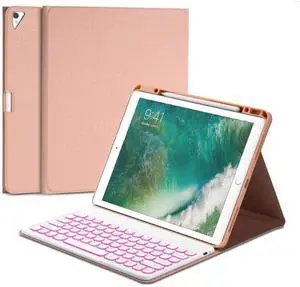 QYiiD Keyboard Case for iPad Pro 12.9-inch 2017/2015 (Old Model, 2nd & 1st Generation), 7 Color Backlight, Wireless Detachable Folio Keyboard Cover [Droplet Shape] with Pencil Holder, Pink